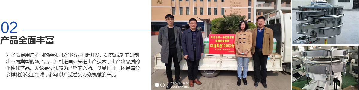 新鄉(xiāng)市萬(wàn)眾機(jī)械設(shè)備有限公司是生產(chǎn)振動(dòng)機(jī)械、篩分設(shè)備和過(guò)濾設(shè)備的專業(yè)廠家之一,擁有生產(chǎn)設(shè)備、雄厚的技術(shù)力量、完善的檢測(cè)手段、嚴(yán)格的管理體系。是河南省的商標(biāo)之一,被河南省科學(xué)技術(shù)廳頒定為高新技術(shù)企業(yè),為新鄉(xiāng)市“守合同重信用企業(yè)“。質(zhì)量信得過(guò)產(chǎn)品、質(zhì)量服務(wù)消費(fèi)者滿意企業(yè)、合格產(chǎn)品等榮譽(yù)稱號(hào)。擁有自主進(jìn)出口經(jīng)營(yíng)權(quán),產(chǎn)品遍布各地,并遠(yuǎn)銷北美、西歐及東南亞等地區(qū)。